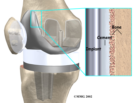 Both are still widely used. In many cases a combination of the two types is used. The patellar (kneecap) portion of the prosthesis is commonly cemented into place. The decision to use a cemented or uncemented artificial knee is usually made by the surgeon based on your age, your lifestyle, and the surgeon's experience.